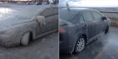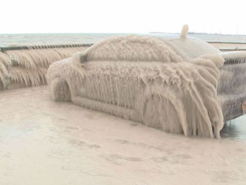 Sáng 11/1, chiếc ô tô hiệu Mitsubishi đậu bên hồ Erie thuộc thành phố New York biến thành một tác phẩm điêu khắc băng đá do các lớp nước tràn lên. Nó nhanh chóng trở thành một địa điểm thu hút du khách và người dân địa phương. Hầu hết mọi người đi qua đều dừng chân chụp ảnh chiếc xe bị đông cứng.